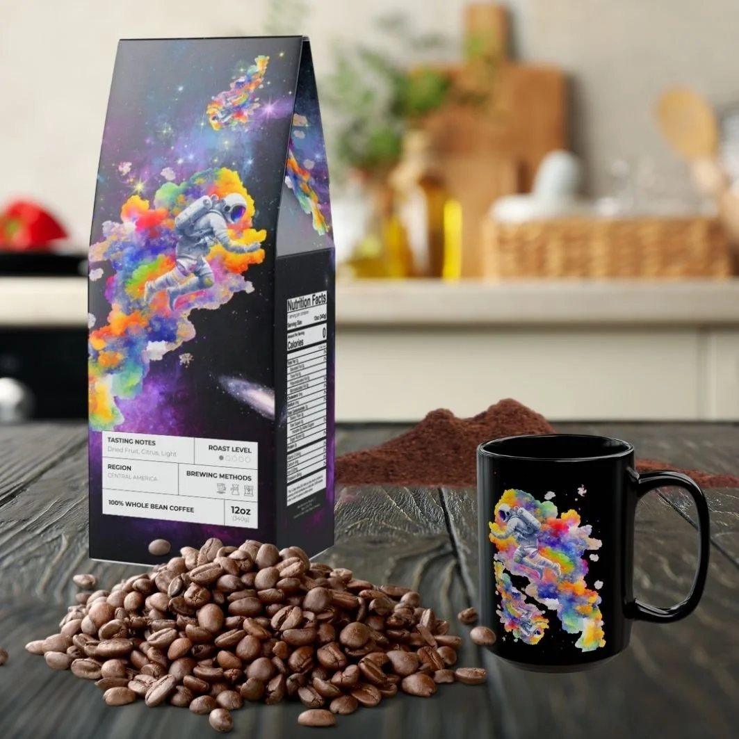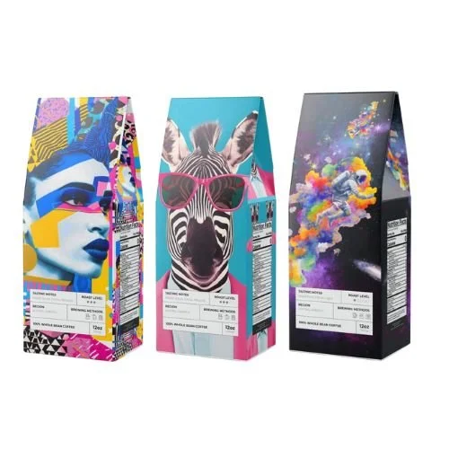 Artistic Coffee Bags: Explore creative designs for your coffee bags, with exclusive options for Ovalmugs Members.